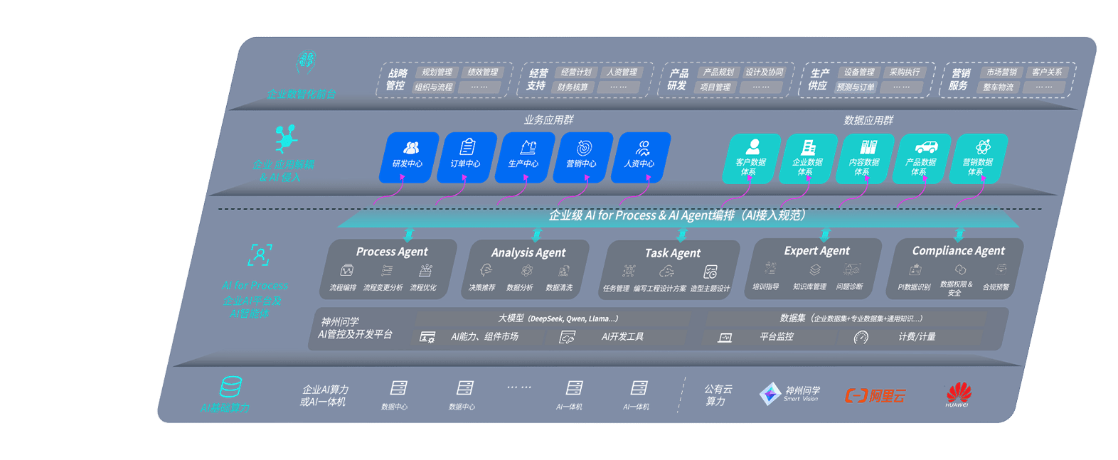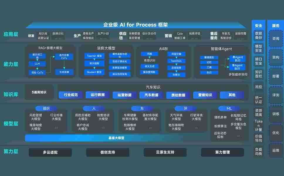 端到端的一站式AI工作空间深度融合了从企业战略规划到日常经营的全流程业务板块,,,,定向解决车企内部领域多、、、部门多、、、链条长、、、场景碎片化等难题,,,支持车企快速构建以AI为核心的生产力写作体系,,,实现任务执行与AI能力的无缝集成与交互